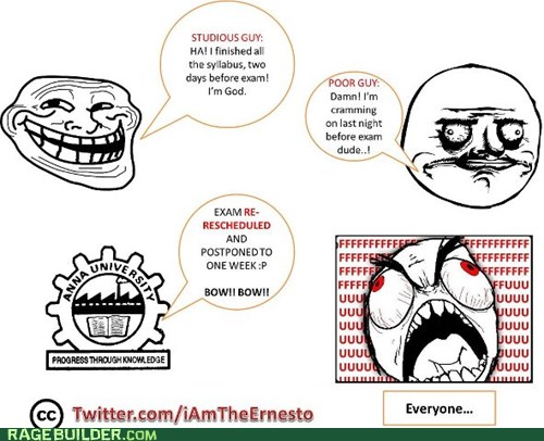 So the students are trolling them through their memes. The university examination for ug pg regular degree exam will commence from april 2020 and continue till may 2020. Anna university latest memes anna university latest news 2020 latest update of anna university. The exam will be held in two. The new date will be announced later. In the wake of unforeseen circumstances following the anti sterlite protests at tuticorin in tamil nadu the anna university has postponed the dates of examinations scheduled on may 25 may 26 and may 28. This video is the collocation of.