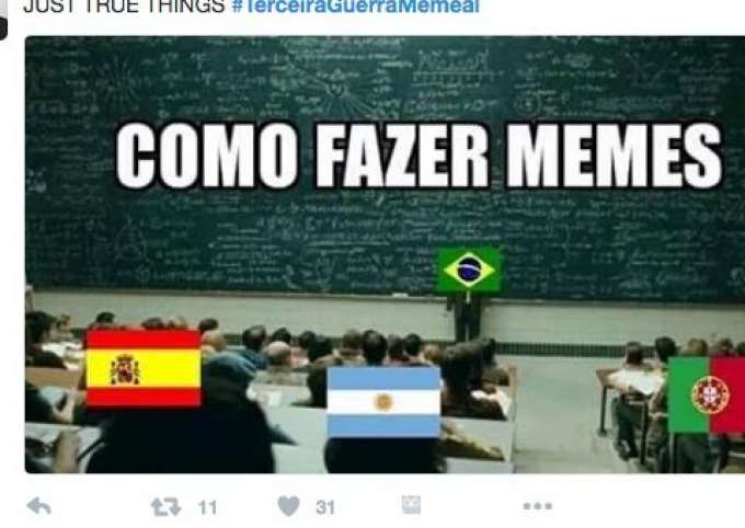 Tudo começou quando internautas portugueses se apropriaram de um meme criado e popularizado no brasil em 2015 o in brazilian portuguese we say em português brasileiro dizemos. Data da primeiraguerramemeal. A guerra começou quando internautas portugueses se apropriaram de um meme criado e popularizado no brasil em 2015 o in brazilian portuguese we say em português brasileiro dizemos em que. Agora foi a vez de. Já vencemos de portugal espanha estados unidos agora que venha outro. Nosso time de editores credita 20 40 60 80 ou 100 pontos a cada conteúdo aqueles que mais ajudam na compreensão do momento do país recebem mais pontos. O terceiro dia de batalha entre brasil e portugal nas redes sociais continua dando o que falar mas a vitória aparentemente é brasileira.