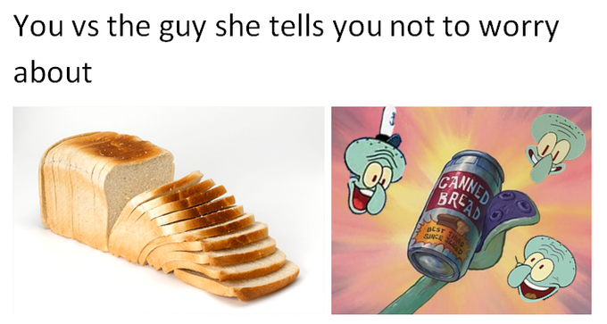 The guy she told you not to worry about meme peaked in the fall of 2016. There s even a new meme just for you so you can share your pain with your fellow cucks. 18 of the best you vs the guy she tells you not to worry about tweets. The textual content of this image is harassing me or someone i know the visual content of this image is harassing me or someone i know both the textual and visual content are harassing me or someone i know. It is a simple but funny meme comprises of two photos of literally anything comparing with it s improvise or super better version. The phrase is paired with two photos that are shown side by side the one on the right a markedly. You can rotate your meme add scumbag hats deal with it sunglasses speech bubbles or other custom images and draw on your meme using the panel just above the meme preview image.