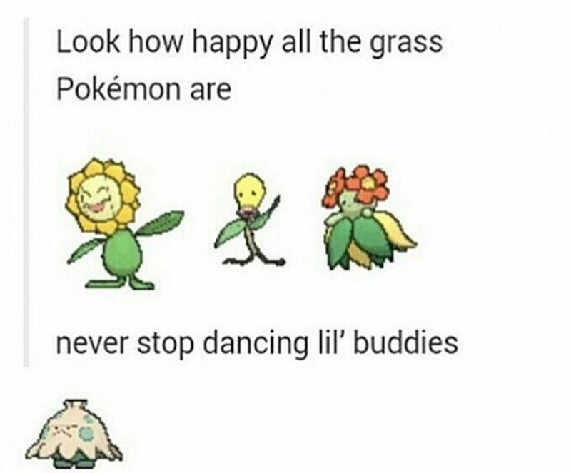 Pokemon grass type meme. Having the honor of representing the galar region milo is a jolly and likeable character who seems to really enjoy what he does he s the first gym leader you face on your galar adventure and though he provides a good bit of exposure to galarian gym battles he isn t exactly the hardest of the bunch. Grass types are tied with rock in having the most weaknesses out of all types with five. Welcome to our pokemon sword and shield grass pokemon list here you can view a list of the strongest grass type pokemon organize by pokedex and displaying important stats such as attack sp attack and even the total to give you an idea of the the pokemons overall power. The newest grass type gym leader also happens to be the easiest to handle. This creates a simple triangle to explain the type concept easily to new players. Since generation i a particular asset of grass types is being the only type that is immune to leech seed as of generation vi grass type pokémon are also immune to powder and spore moves such as sleep powder and stun spore additionally grass pokémon are the only ones affected. Furthermore many grass pokémon have poison as their secondary type.