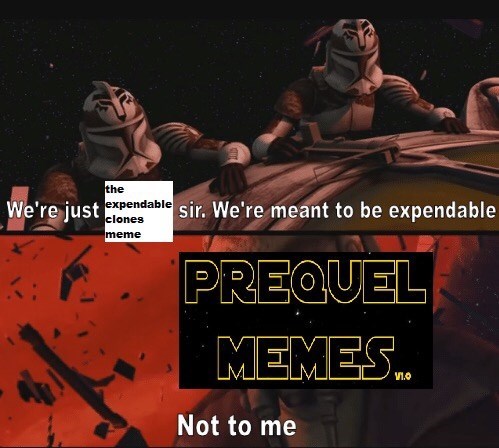 Posted by 3 days ago. Memes of the star wars prequels. Posted by 4 days ago. Caption a meme or image make a gif make a chart make a demotivational flip through images. This is outrageous it s unfair. You can create meme chains of multiple images stacked vertically by adding new images with the below current image setting. 30 dumb af star wars prequel memes for your perusal funny memes that get it and want you to too.