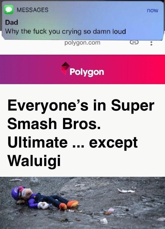 Rest in meme s waluigi. Ultimate and spread memes videos artwork and petitions to get sakurai to make waluigi playable. Even the washington post noted the outpouring of support for waluigi by making a post about him being robbed and humiliated by nintendo likely as a jab at him being knocked out seconds after being seen. Why waluigi could still be in the smash ultimate roster duration.