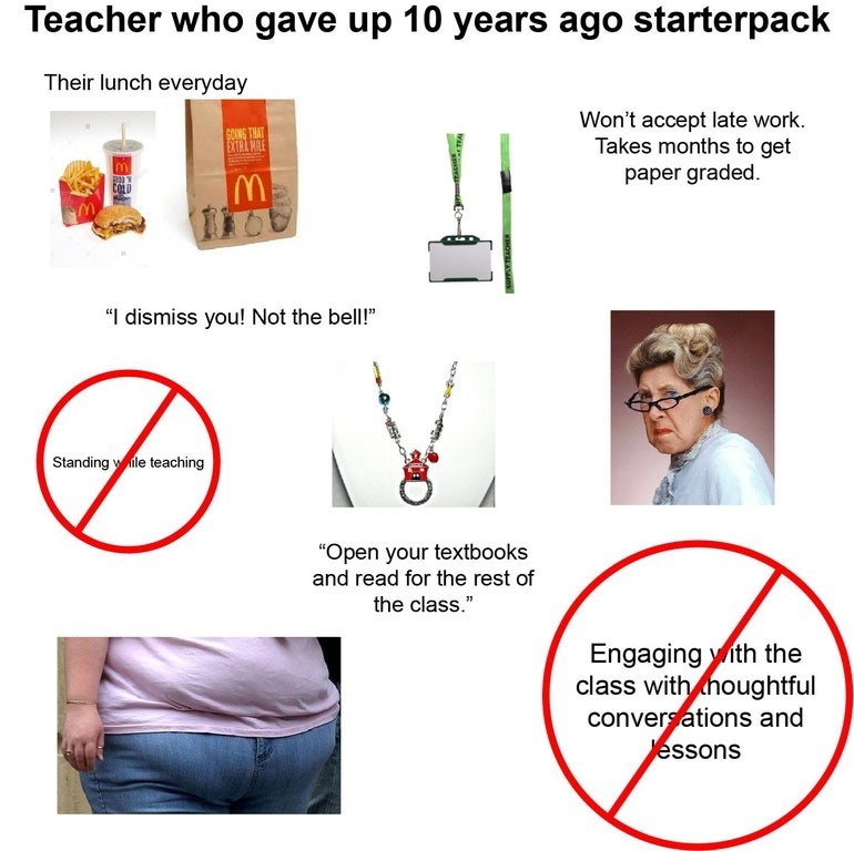 The teacher s pet peeve starter pack. While some starter packs are easy grandma starter pack high school teacher starter pack most require a good deal of thought. While the format itself is super versatile it s hard to pull em off in a way that does the subject justice. New comments cannot be posted and votes cannot be cast. We ve got to hand it to the creators of starter pack memes.